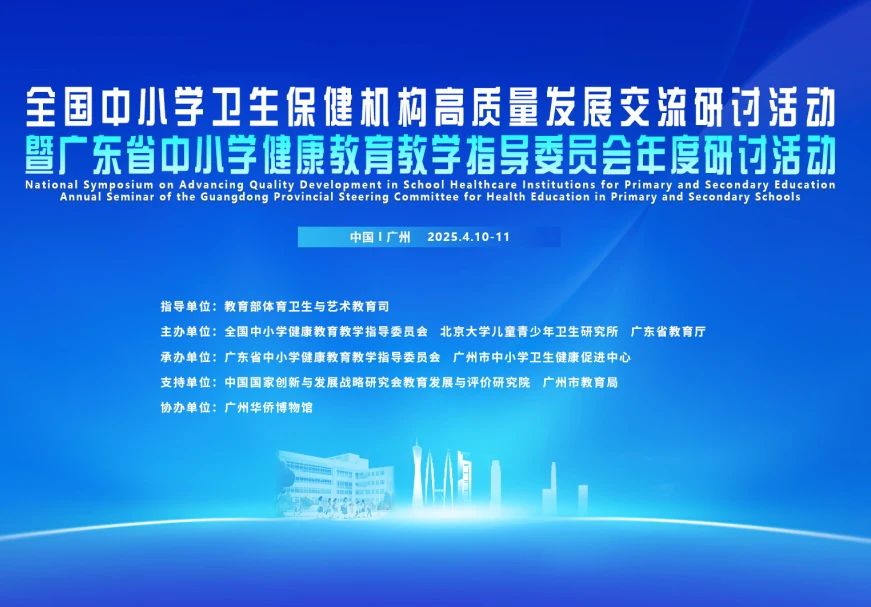 2025年4月10至11日,“全國中小學(xué)衛(wèi)生保健機(jī)構(gòu)高質(zhì)量發(fā)展交流研討活動(dòng)暨廣東省中小學(xué)健康教育教學(xué)指導(dǎo)委員會年度研討活動(dòng)”在廣州成功舉辦。活動(dòng)由教育部體育衛(wèi)生與藝術(shù)教育司指導(dǎo),全國中小學(xué)健康教育教學(xué)